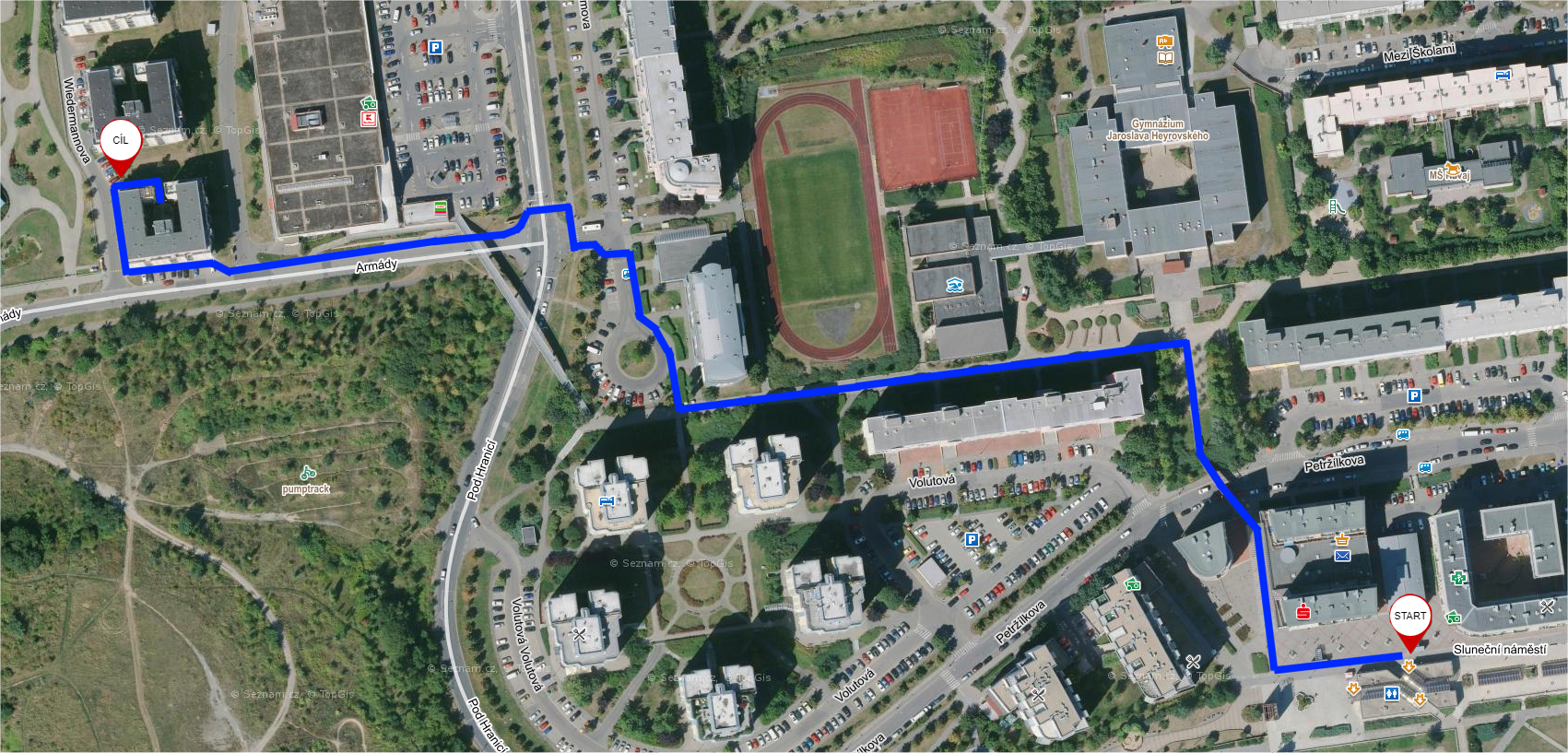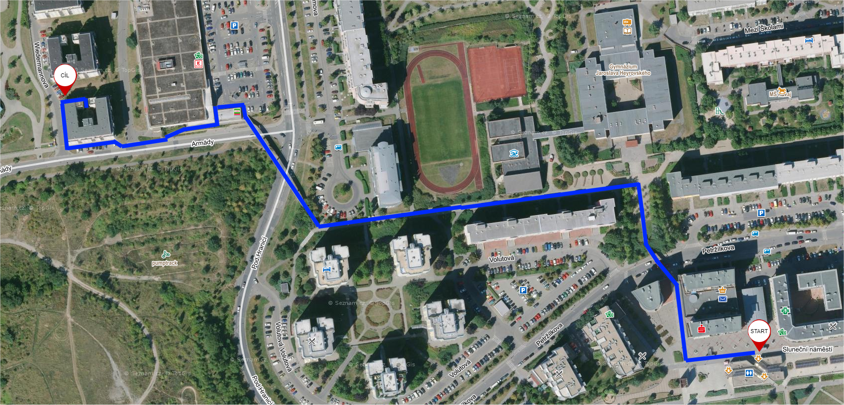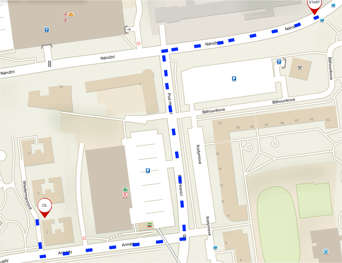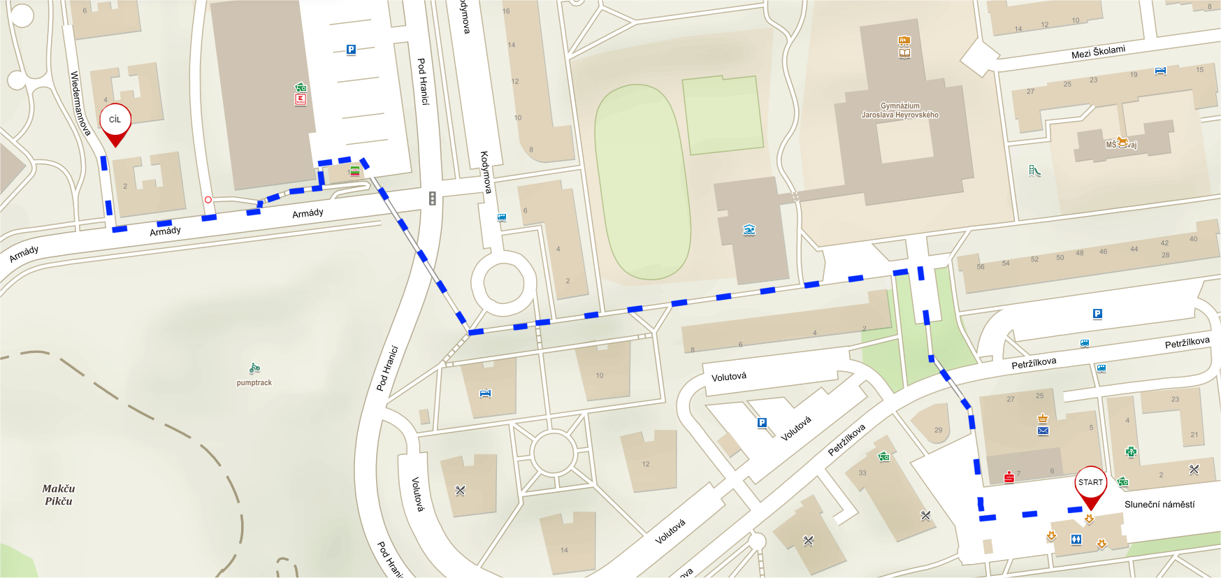 MHD: Pokud Vám nevadí kratší procházka, doporučujeme využít linky metra „B“, v rámci které pojedete na zastávku „Hůrka“. Odtud je to rychlou chůzí cca 6 minut, pomalou chůzí cca 10 minut (mapka přesné trasy je zde a zde a zde nebo zde a zde a zde). Můžete taktéž využít autobusové linky, nejblíže je zastávka „Kodymova“ (doba chůze 4 minuty; mapka přesné trasy je zde a zde a zde), dále můžete jet na zastávku „Nová Kolonie“ (doba chůze 6 minut; mapka přesné trasy je zde a zde a zde) a nebo na zastávku „Bucharova“ (doba chůze 9 minut; mapka přesné trasy je zde a zde a zde).