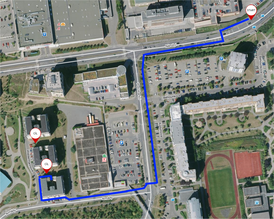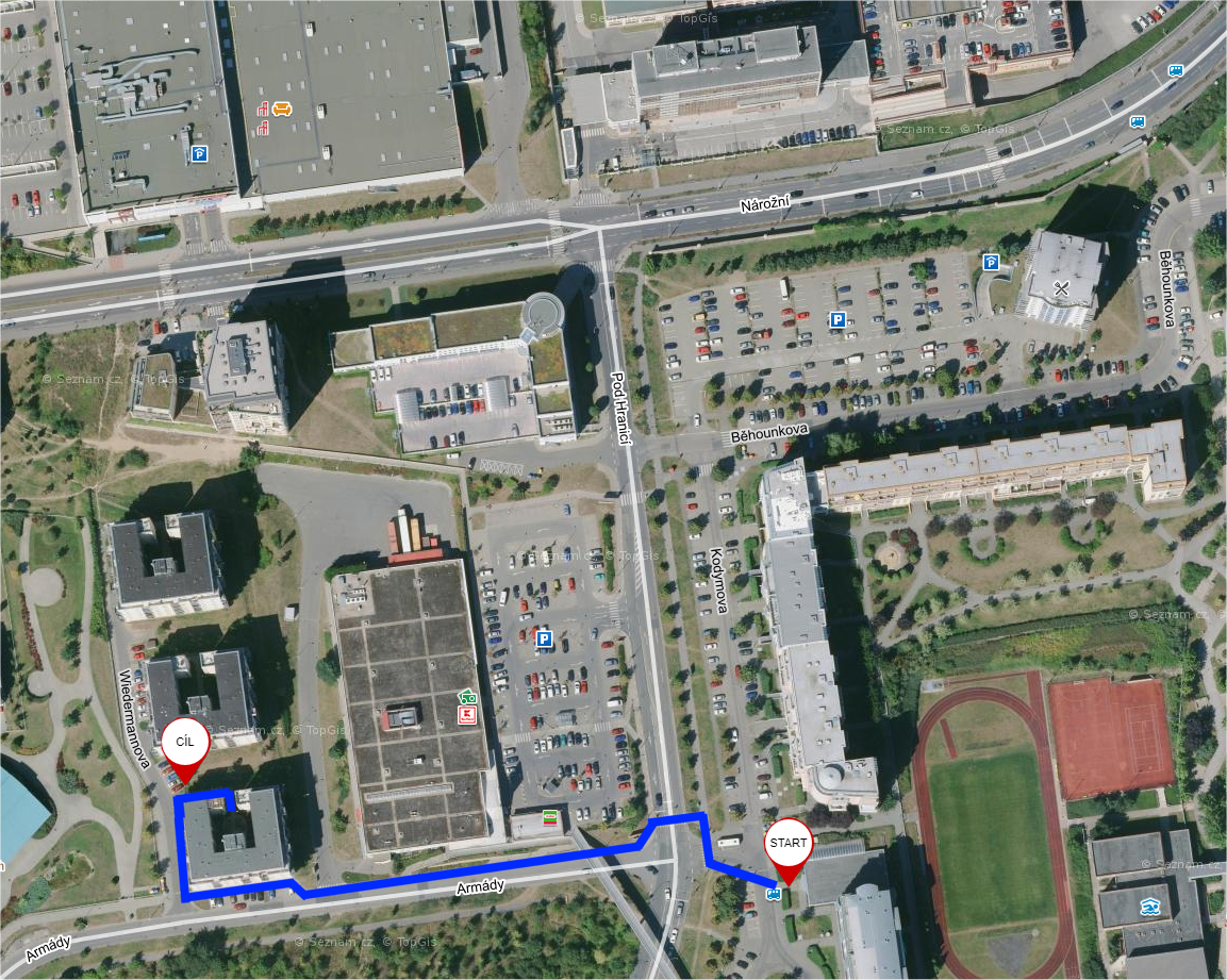 AUTEM: Nejlepší spojení k nám je autem. Sídlíme v blízkosti Rozvadovské spojky a kousek od Pražského okruhu (5 minut jízdy od dálničního sjezdu, označeného jako „21 – Praha – Stodůlky“). Z centra města se k nám pohodlně dostanete přes dopravní tepny „Plzeňská“ a „Radlická“. Zaparkovat můžete prakticky kdekoliv v bezprostřední blízkosti naší adresy, pouze přímo v ulici je zákaz stání (nikoliv zastavení) mimo parkovací stání a tudíž tuto možnost využijte pouze v případě, že k nám jdete na kratší schůzku a pro jistotu nechte zapnutá výstražná světla Vašeho vozu, abyste nedostali pokutu. Doporučená místa k delšímu parkování najdete zde. V bezprostřední blízkosti domu je velké parkoviště obchodu Kaufland.